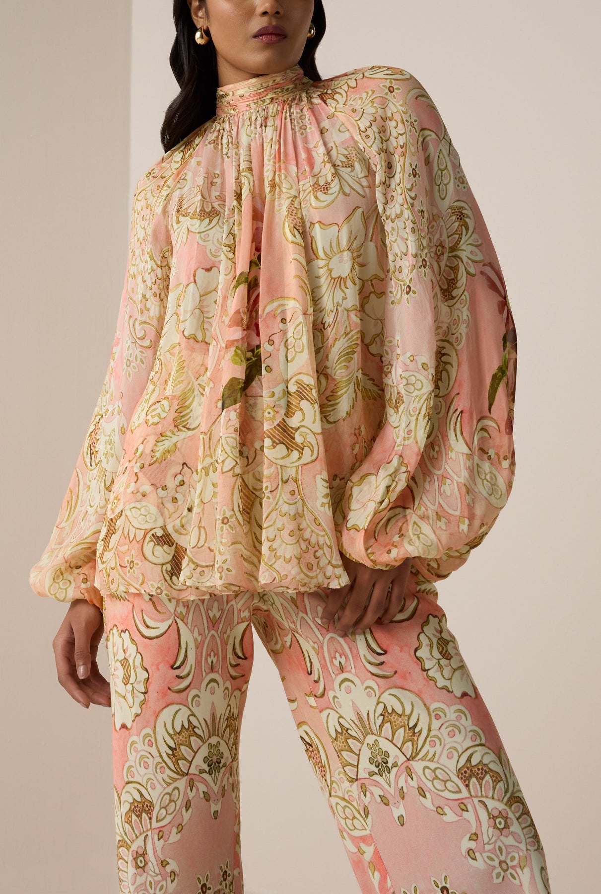The Anah Pants from the Ramadan'26 collection are crafted in soft peach viscose heavy crepe, offering a fluid fall and a relaxed fit. Designed with an elasticated waist for all-day comfort, these pants feature a mood-lifting filigree bloom print that adds a touch of understated elegance. Pair them with the matching Anah Top for a coordinated and refined festive look.