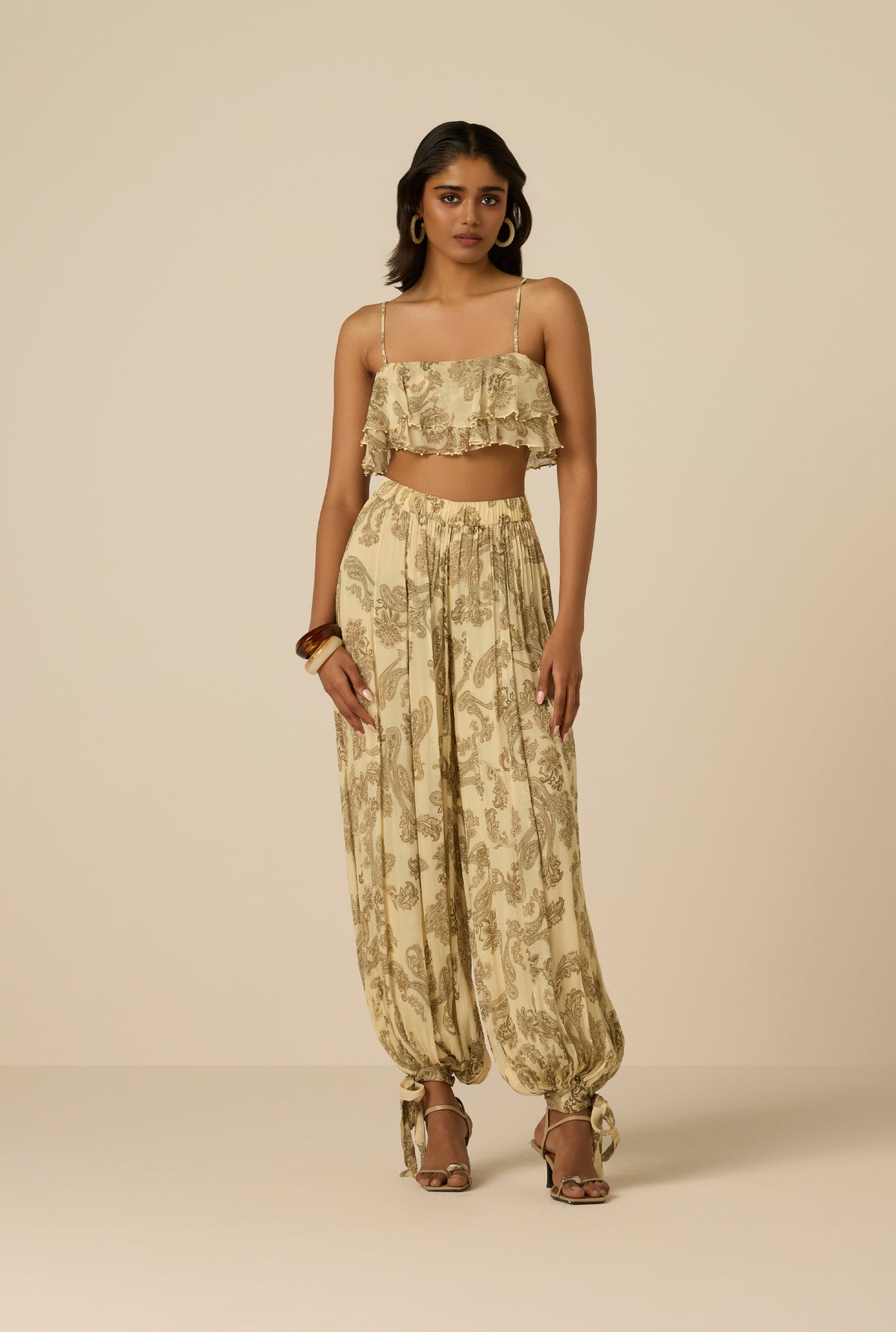 Easy yet refined, the Dani Harem Pants pair beautifully with the Dani Ruffle Top for a coordinated spring look. They bring a romantic, relaxed energy to beachside plans, lounging on vacay or for that striking day-to-evening look.